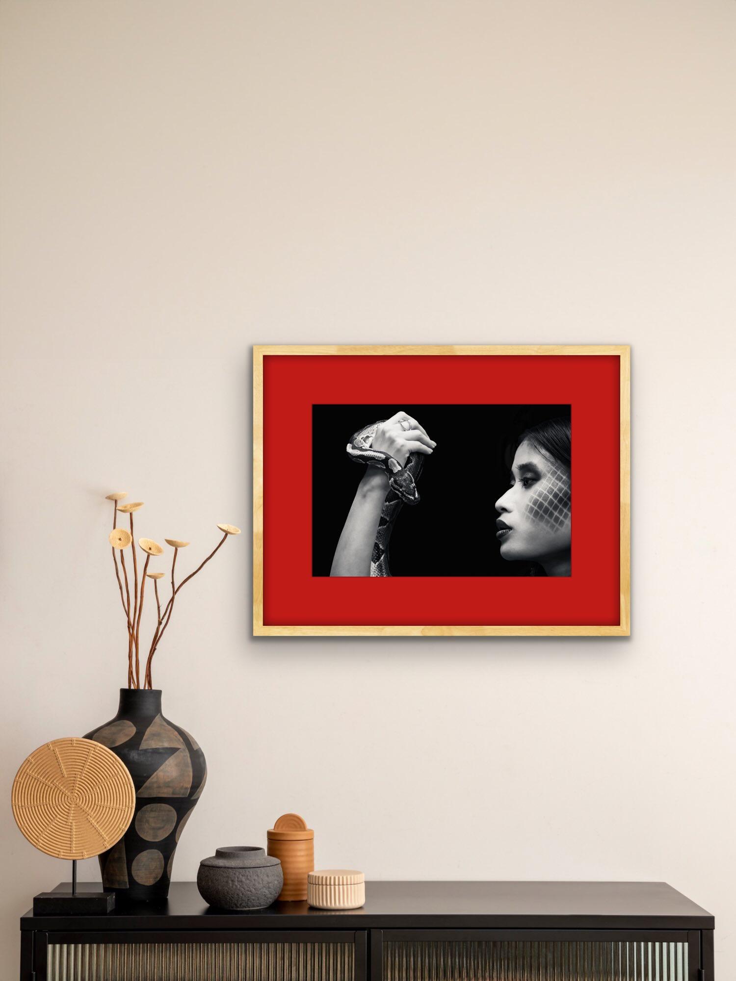 Reine Froide capture un face-à-face intense entre une femme et un serpent imprévisible. Ce portrait artistique en noir et blanc révèle une force calme, sculptée par la lumière. L’image appartient à ma série Kokoro No Kioku, dédiée aux rencontres profondes et aux émotions sincères.