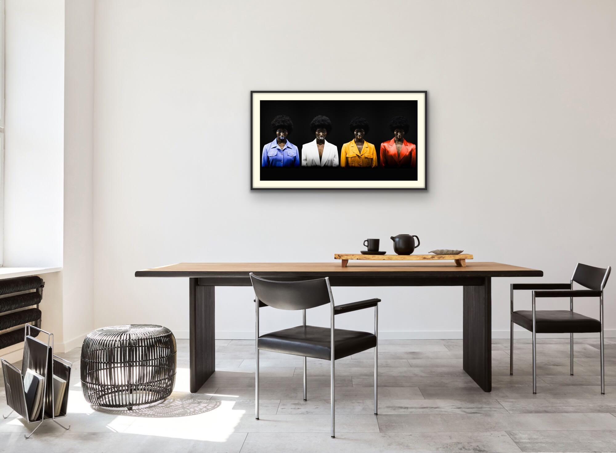 Malgré les variations de couleur et de rôle, le regard demeure identique, frontal et silencieux.